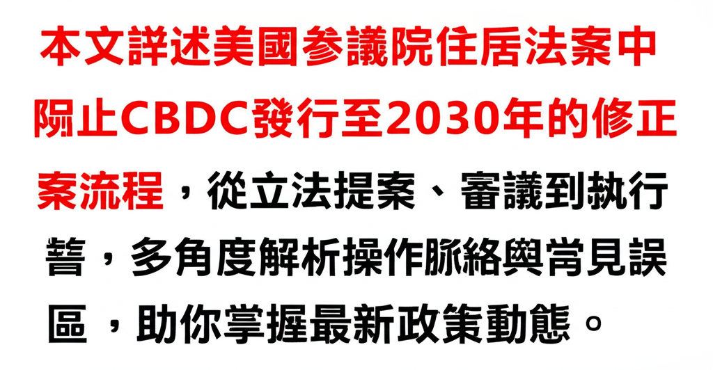 随着数字货币的崛起,美国参议院近期在一项扩展住房法案中提出修正案,建议阻止美国联邦储备系统(Fed)发行中央银行数字货币(CBDC)直到2030年。此修正案不仅呼应了之前独立推动的禁止Fed发行数字美元的提案,也引发了关于CBDC发展方向与规范制定的诸多讨论。如果你想全面了解“如何阻挡或延迟美国CBDC的推进?”,本文将从整体流程出发,解析相关流程阶段及其关键环节,并提供专业判断与策略思考。